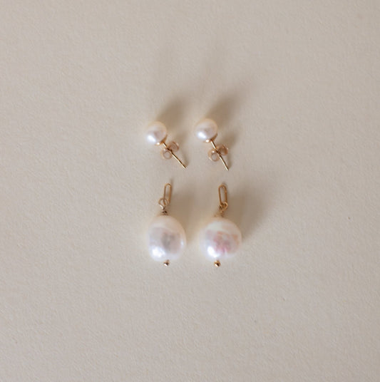 Large Coin Pearl Earrings