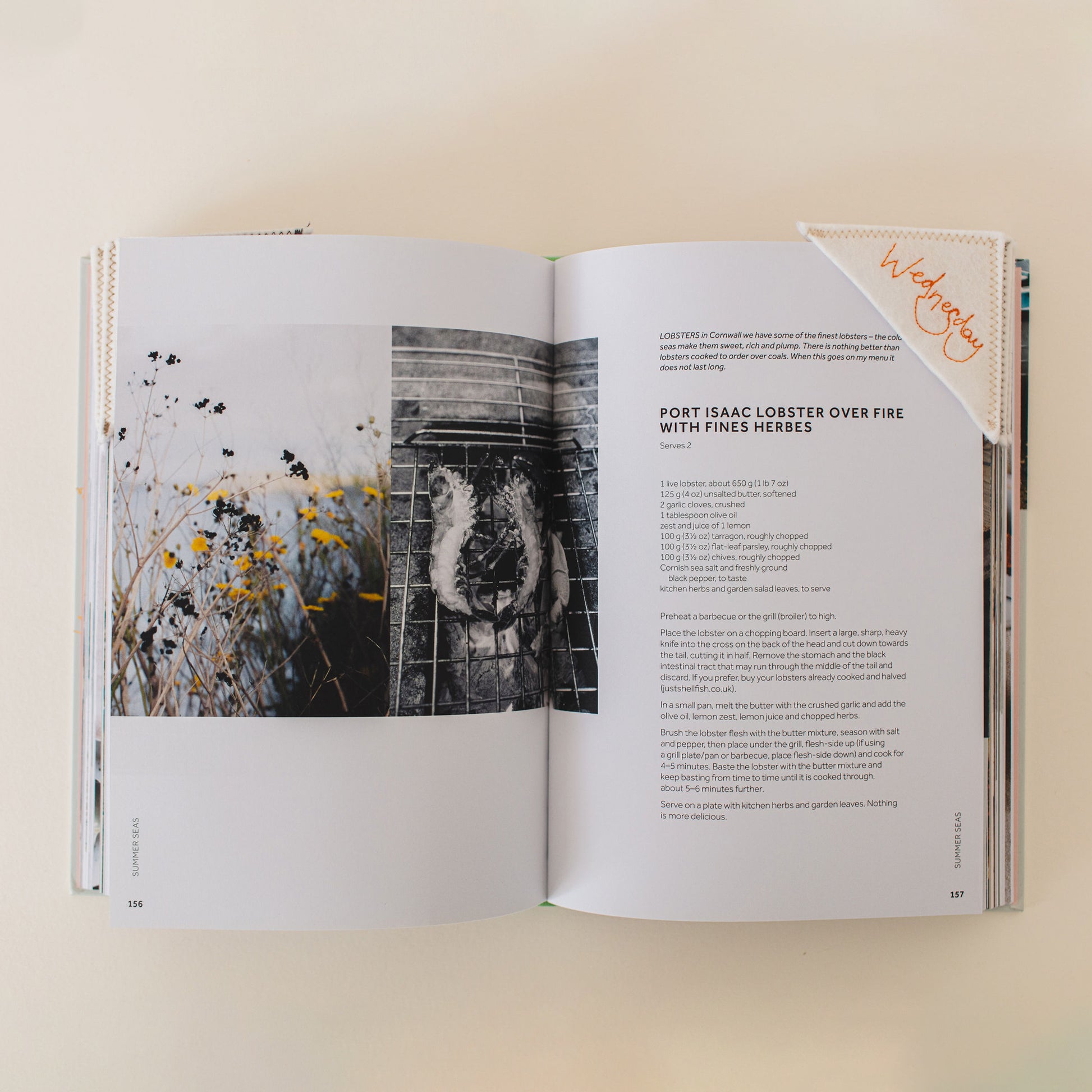 Made in Cornwall and displayed in a little calico bag. The corner book marks slot perfectly on to the corner of the page of your favourite recipe and is embroidered with the 7 days of the week.