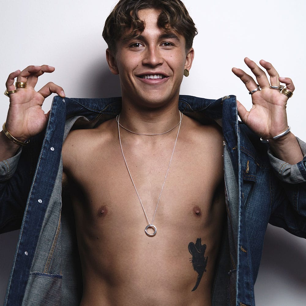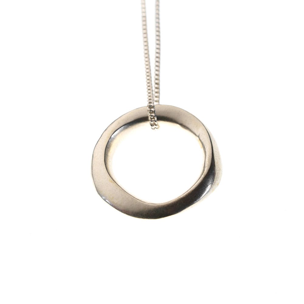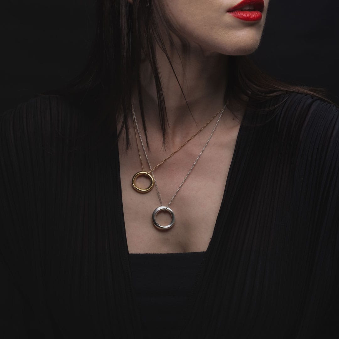 Handmade in sterling silver, this piece is entirely gender-neutral and versatile. It comes complete with a full set of curves and a chain, allowing the option to wear as a ring or a necklace.