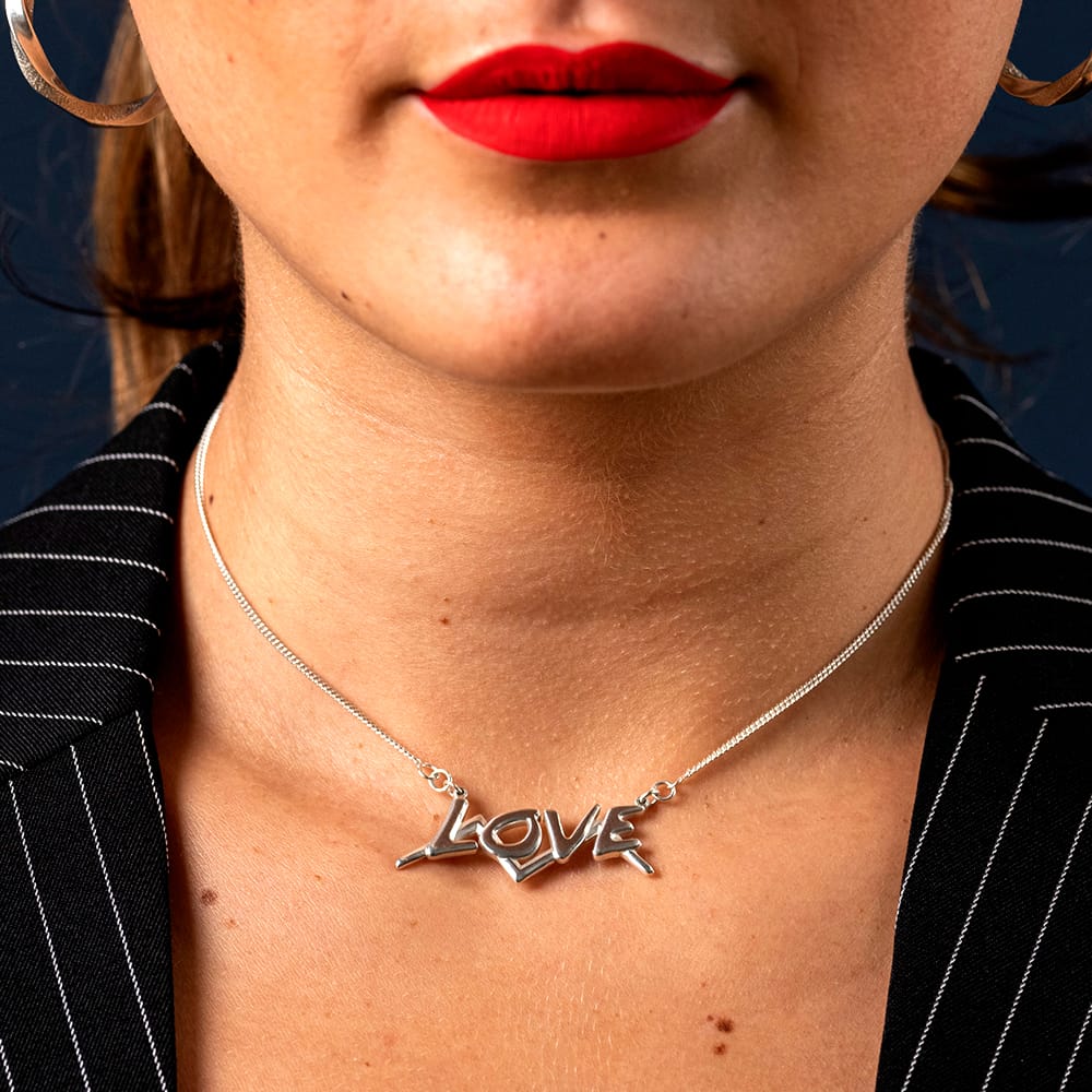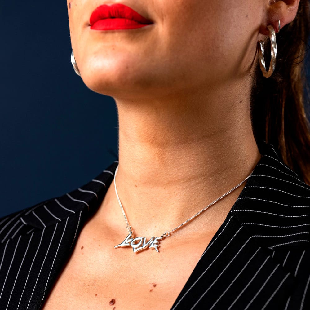 Inspired by 80s graphics, The Mountain Of Love Necklace is formed in sterling silver, hung on a fine chain and finished with a hand made T-bar toggle clasp.