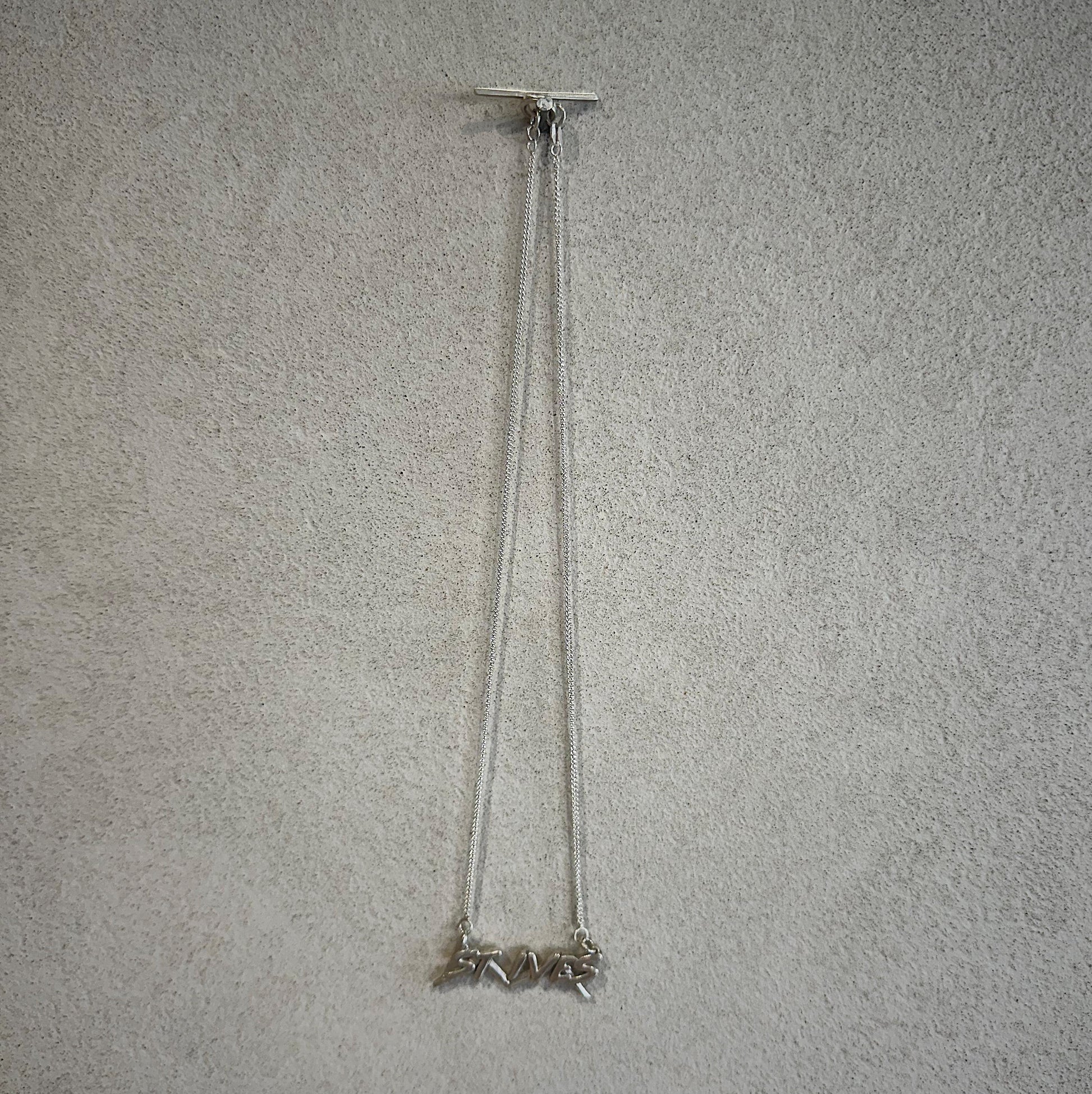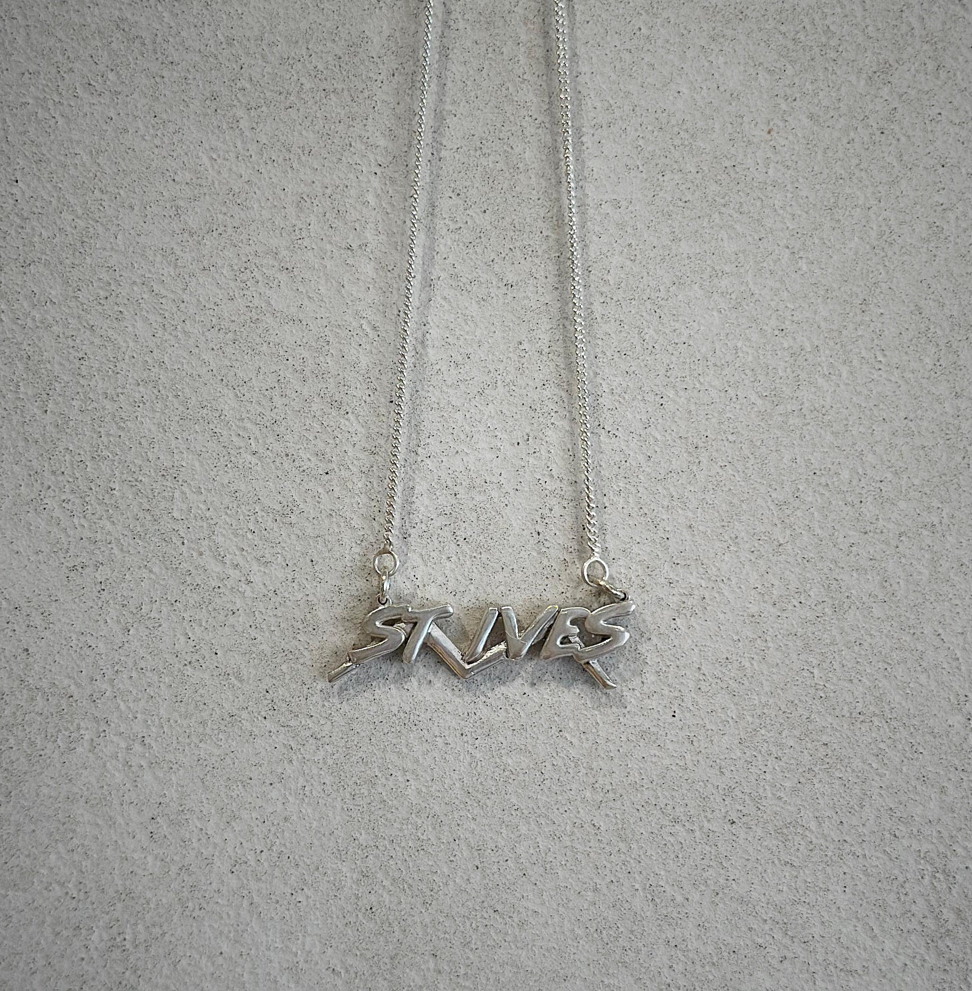 Inspired by 80s graphics, The St. Ives Necklace is formed in sterling silver, hung on a fine chain and finished with a hand made T-bar toggle clasp.