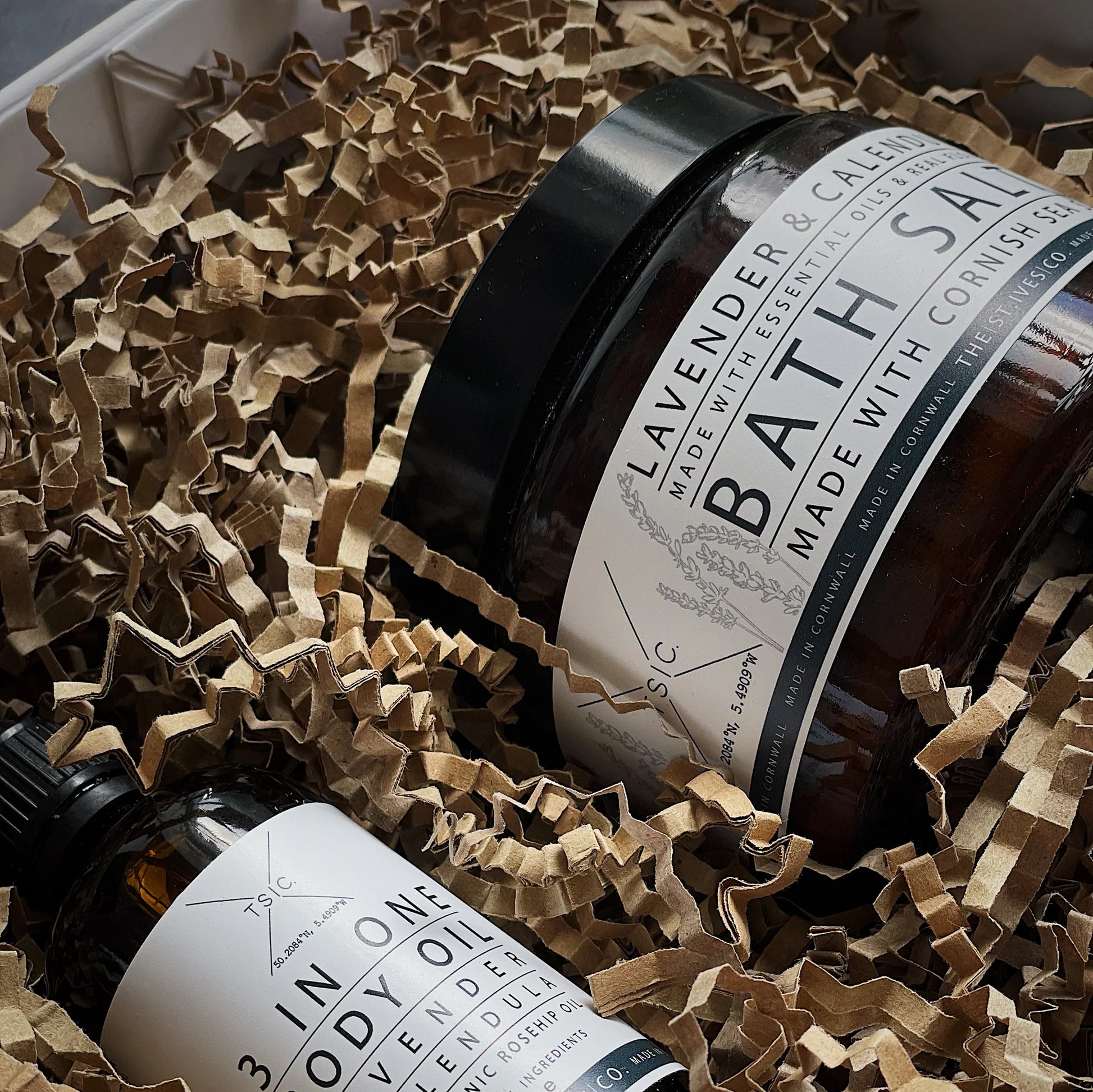 Bath salts and body oil made in Cornwall. Suitable for Vegans.