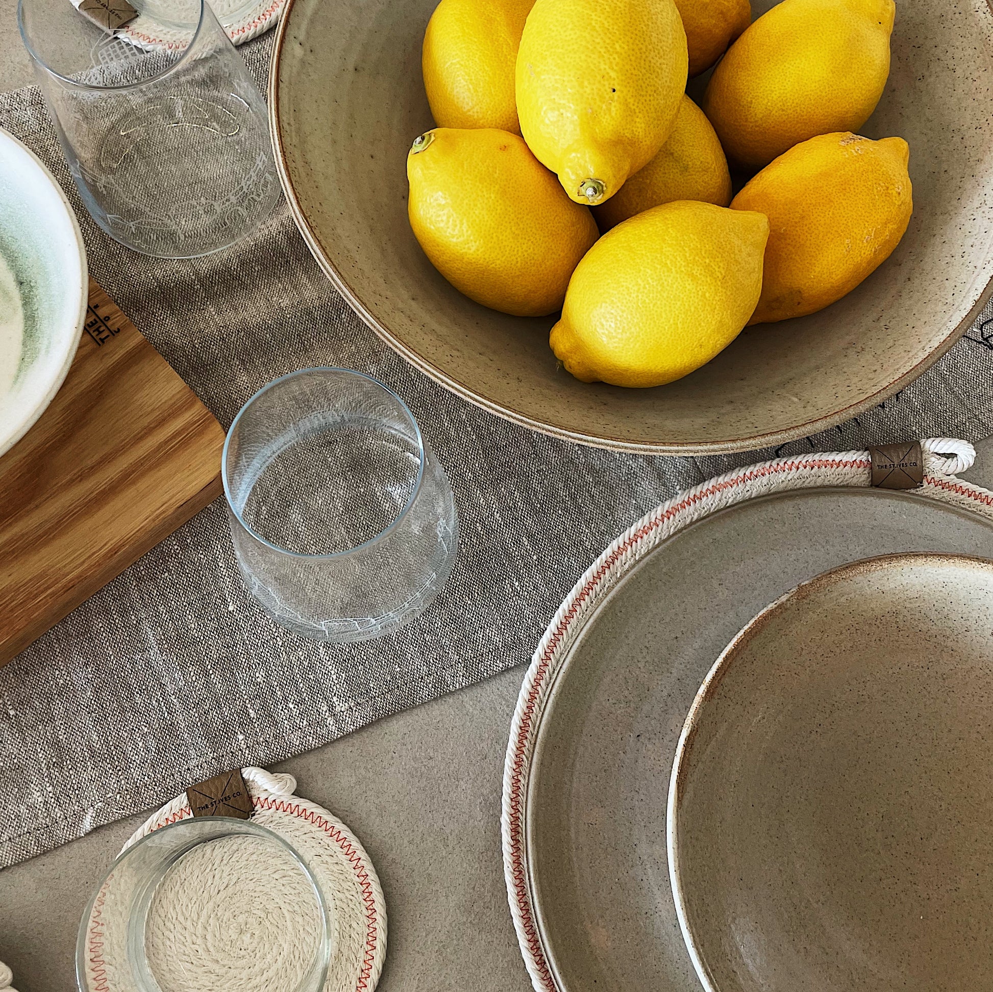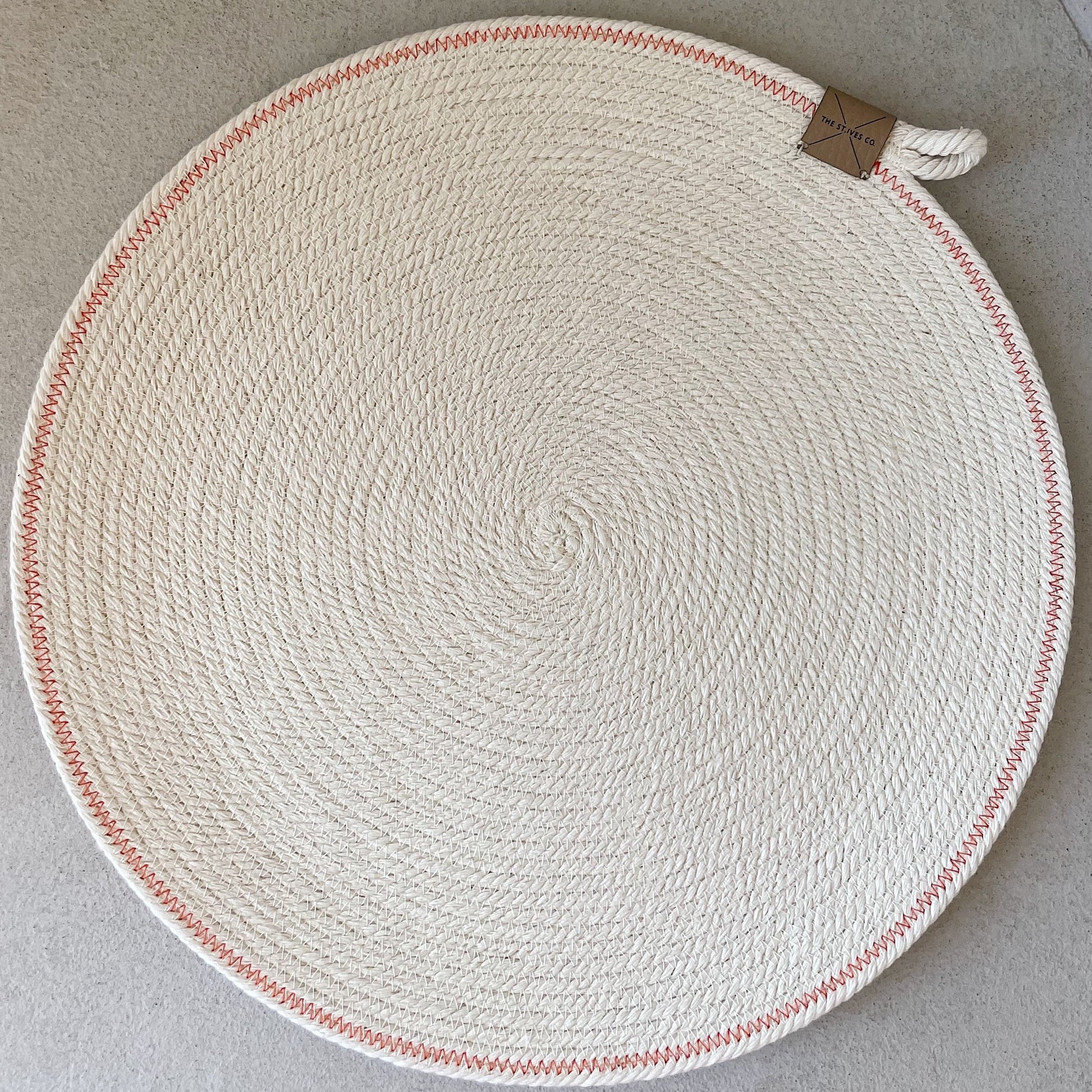 Set of 2 rope placemats. Made by hand from 100% cotton rope in Cornwall. Tag made from vegan leather and etched with The St. Ives Co.