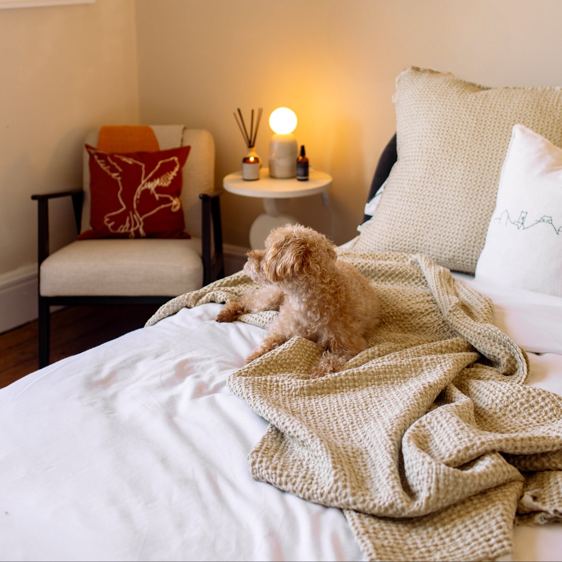 100% cotton waffle blanket. Perfect as a runner at the bottom of a bed, or use as a lightweight cosy blanket on the sofa.